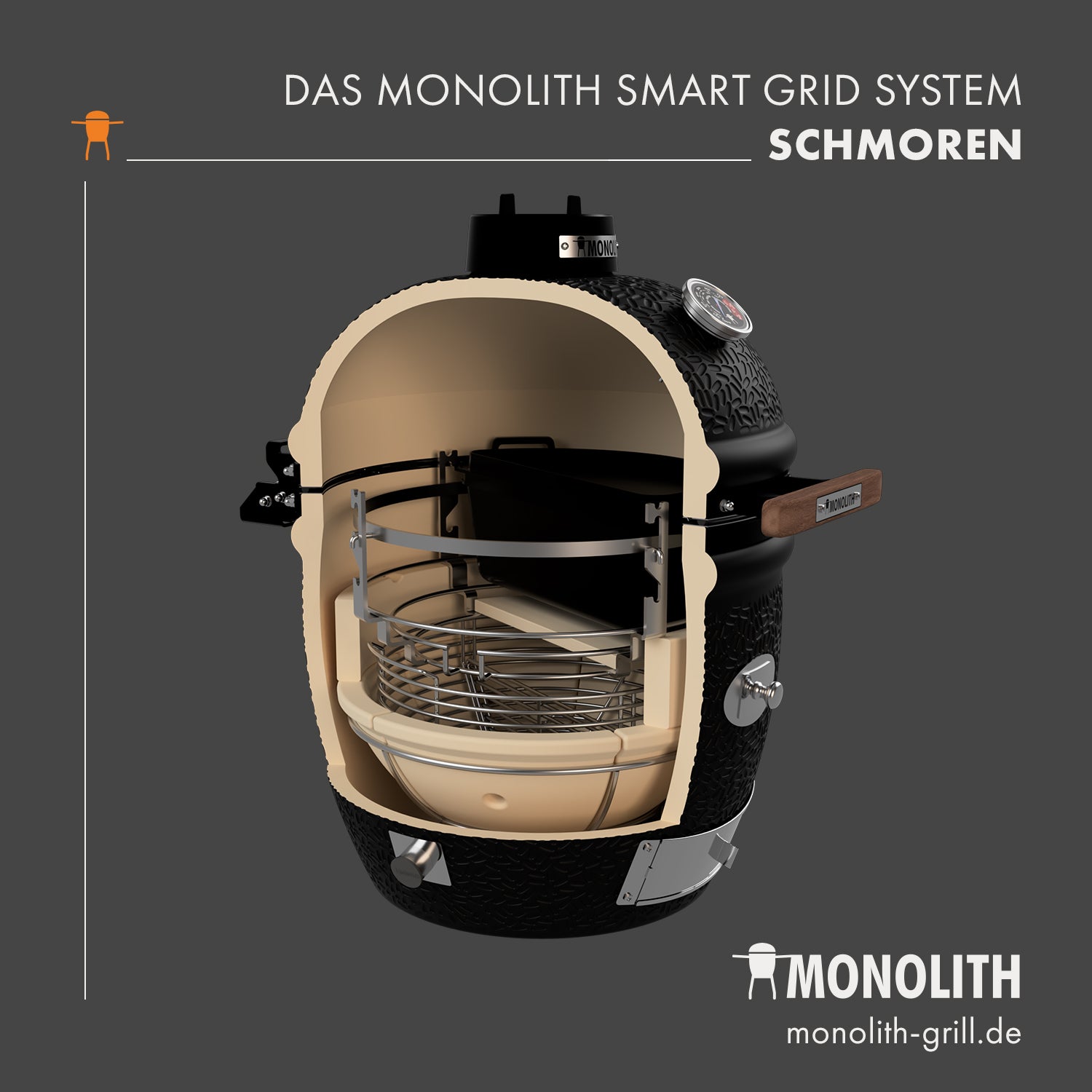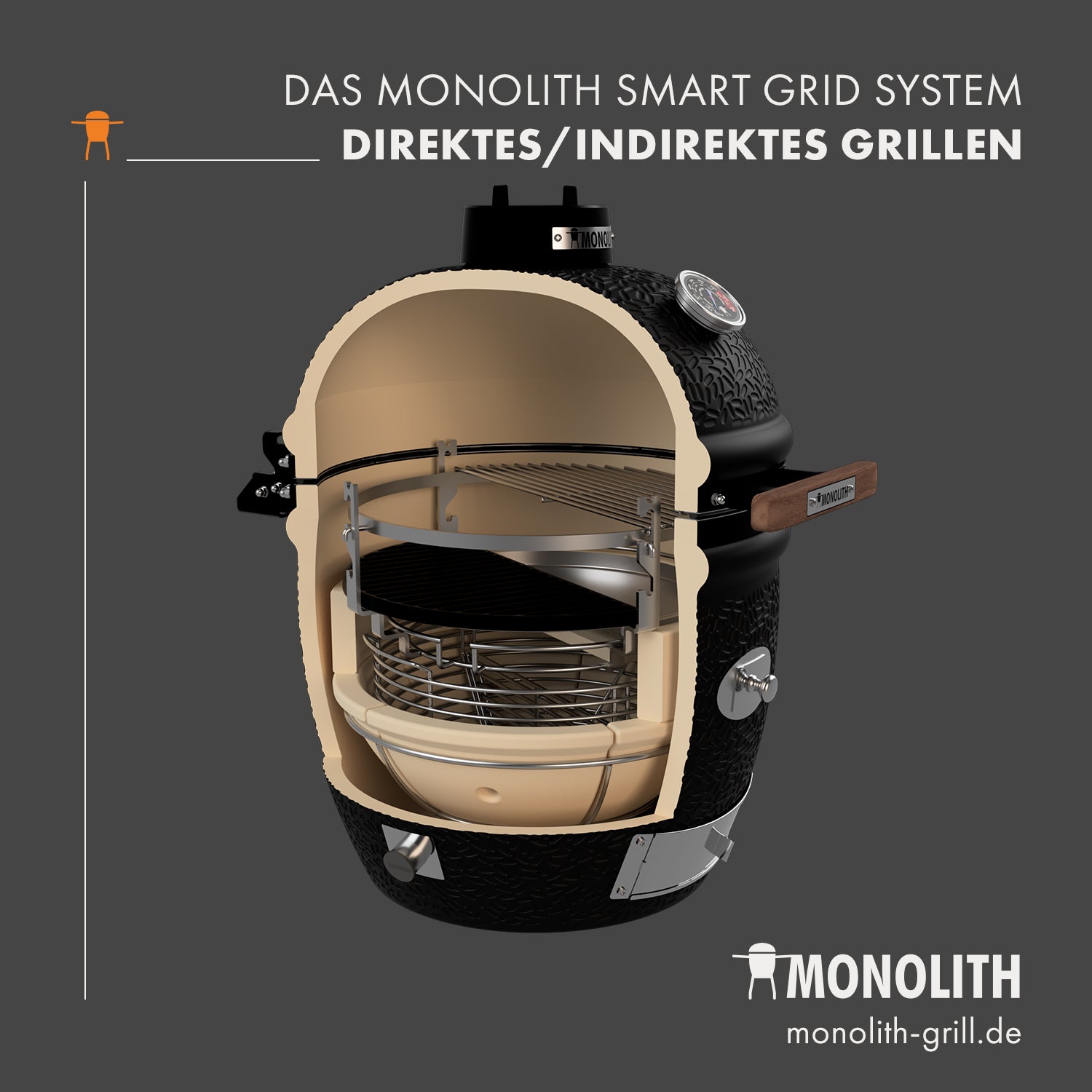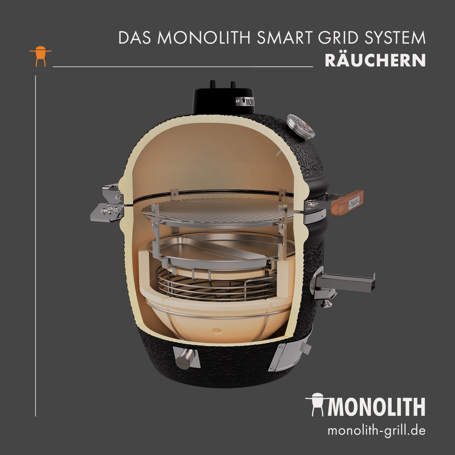 With the modular Smart Grid System (SGS), you can adapt your Monolith Pro Classic to your grilling needs in seconds. Whether it's a spontaneous steak grill or a multi-hour smoke – you control grill zones, temperatures, and cooking methods on multiple levels. Precisely. Flexible. And adaptable at any time.