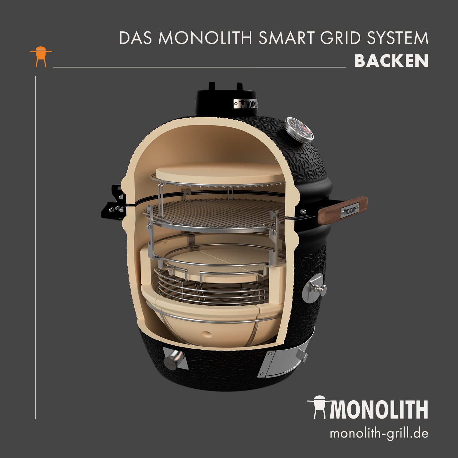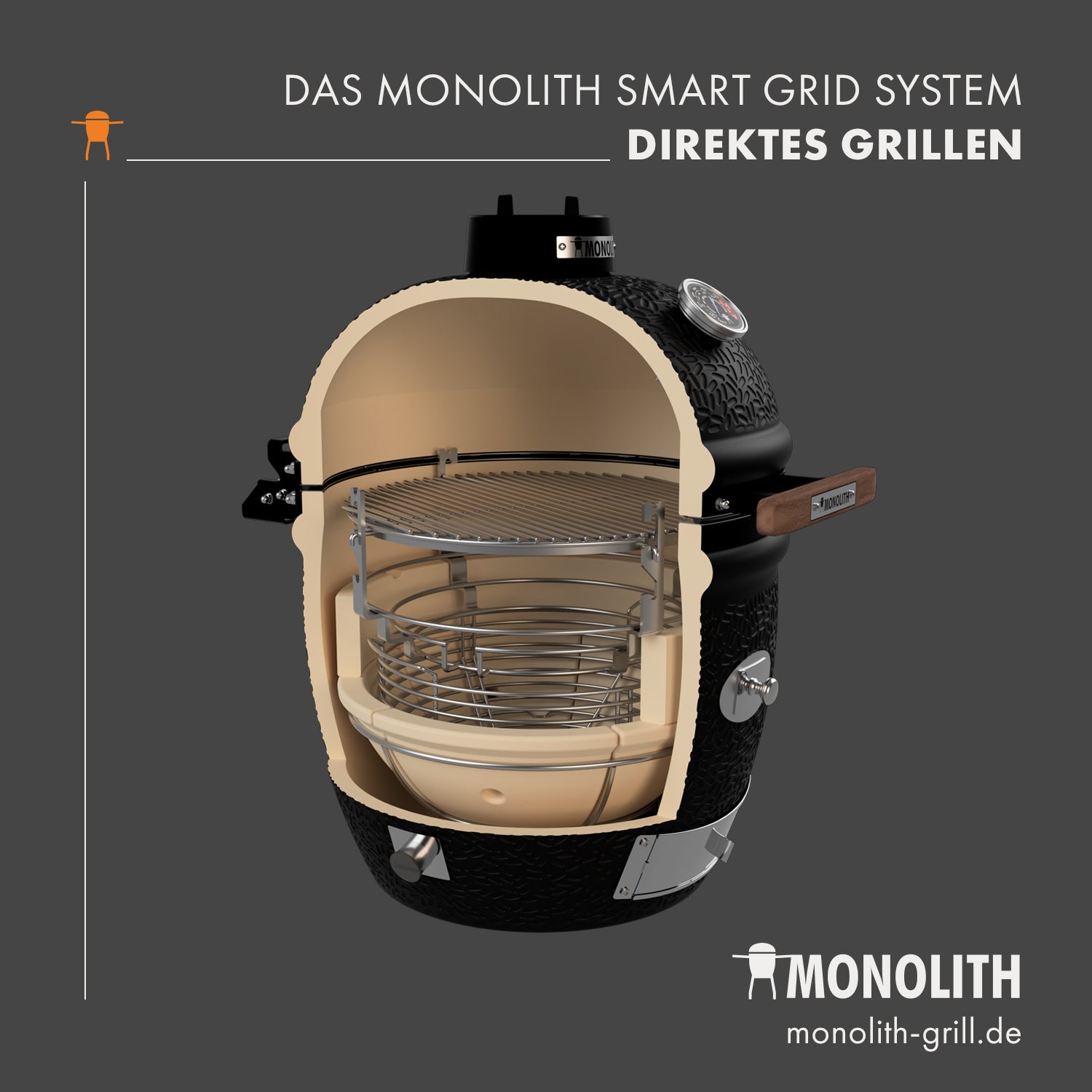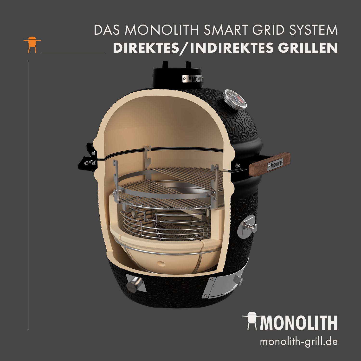 With the modular Smart Grid System (SGS), you can adapt your Monolith Pro Classic to your grilling needs in seconds. Whether it's a spontaneous steak grill or a multi-hour smoke – you control grill zones, temperatures, and cooking methods on multiple levels. Precisely. Flexible. And adaptable at any time.