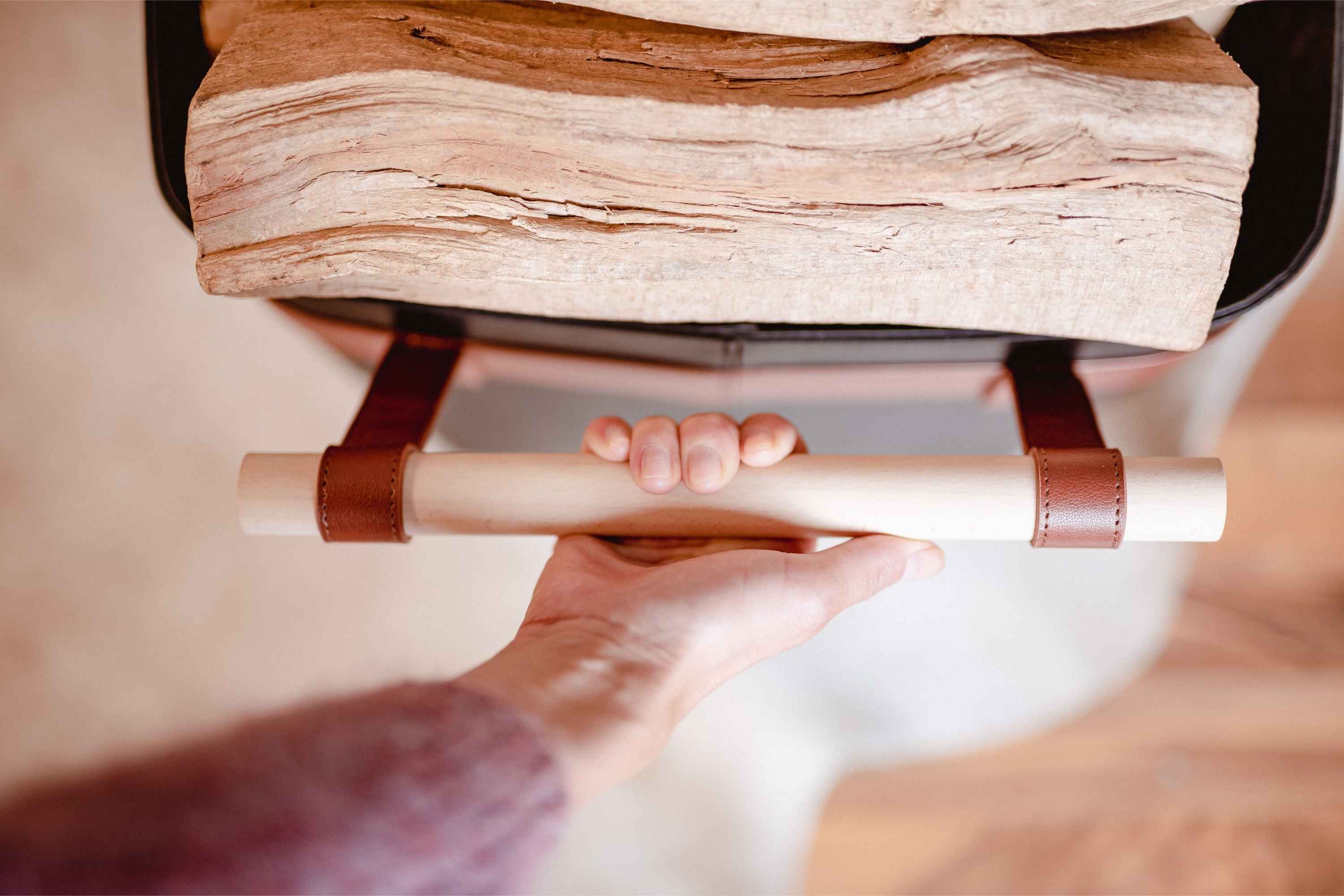 Abstehende Holzgriffe – Bequemer & sicherer Tragekomfort