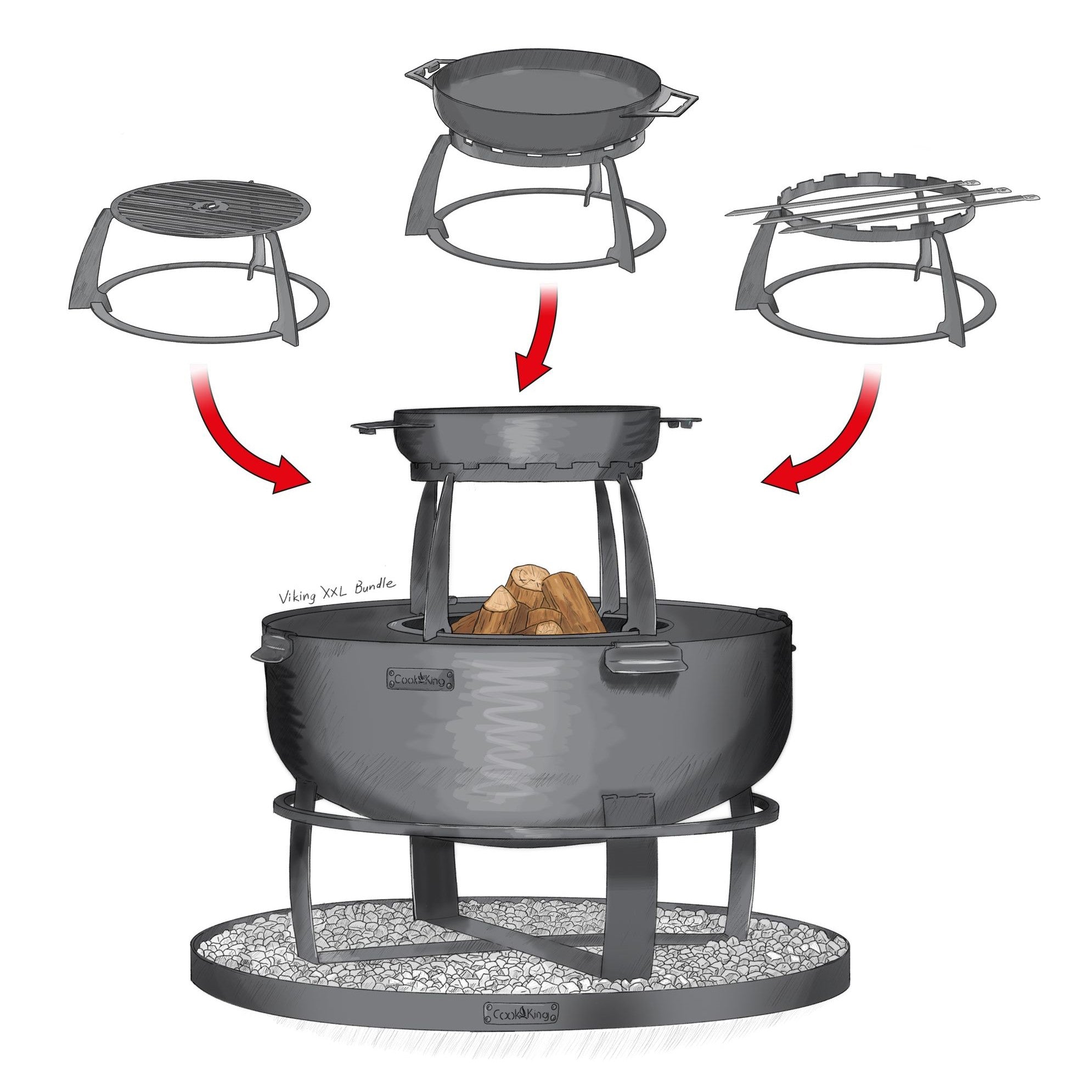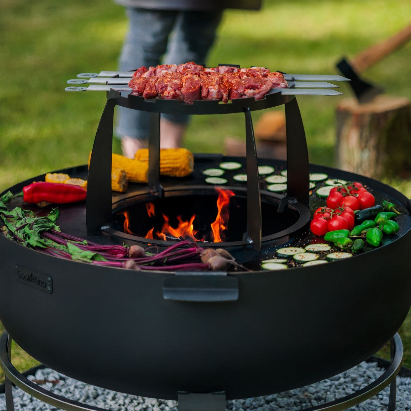 Ob Schaschlik, Gemüsepfanne oder klassischer Rost – du tauschst die Aufsätze in Sekunden aus. - Feuer trifft Design
